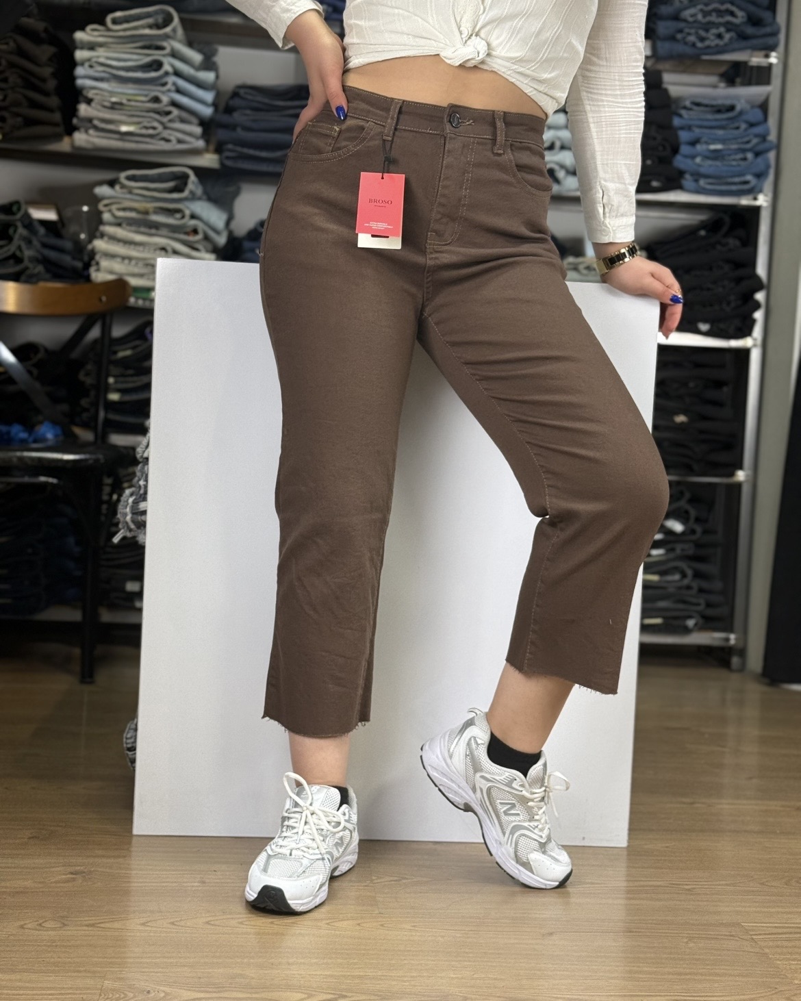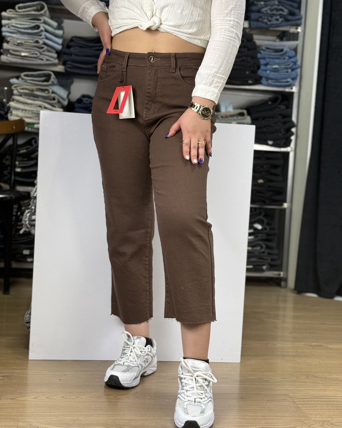رنگ قهوهایی و پاک: رنگ قهوه ایی خالص این شلوار، آن را به گزینهای بینظیر برای استایلهای تابستانی و بهاری تبدیل میکند.